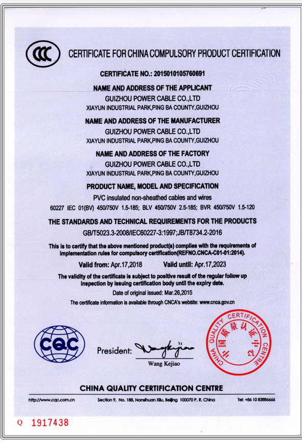 CCC產(chǎn)品認證證書